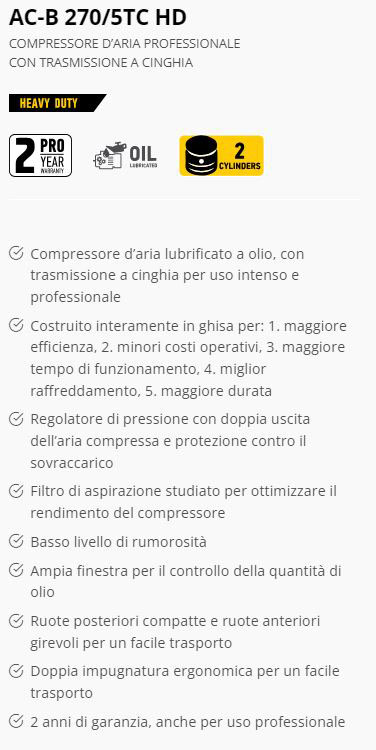 Se il prodotto non è disponibile, prima di ordinarlo, scriveteci via mail o chat per verificare i tempi di consegnaCompressore a cinghia FF Group AC-B 270/5TC HD