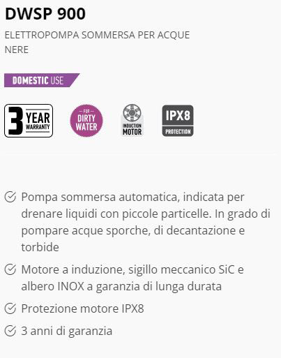 Motore 220V 1.2 Hp Prevalenza 8.5 mt Utilizzo acque nere