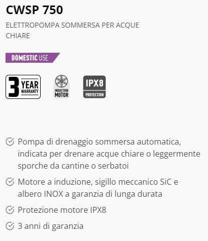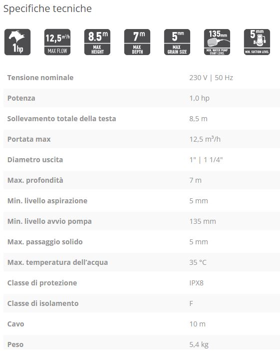 Motore 220V 1 Hp Prevalenza 8.5 mt Utilizzo acque chiare