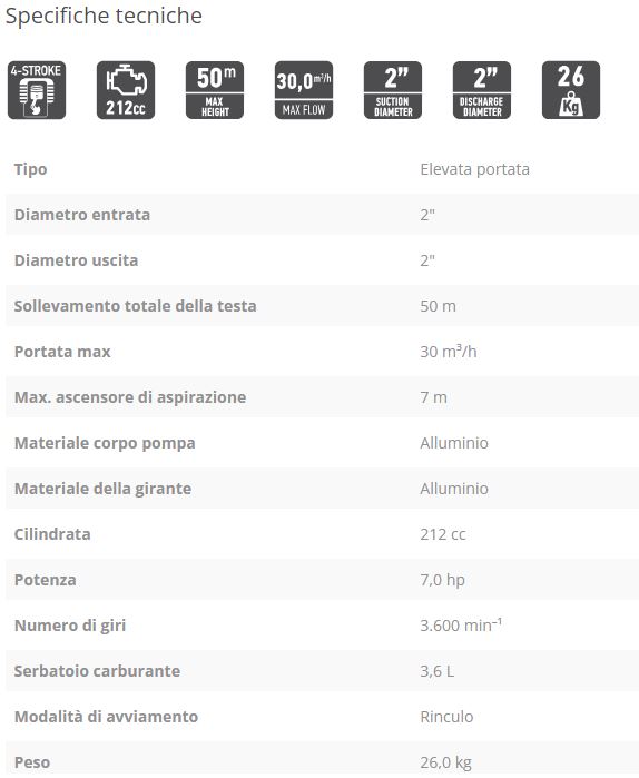 Motopompa acque chiare elevata portata FF Group GWP 50/212 H2 Pro