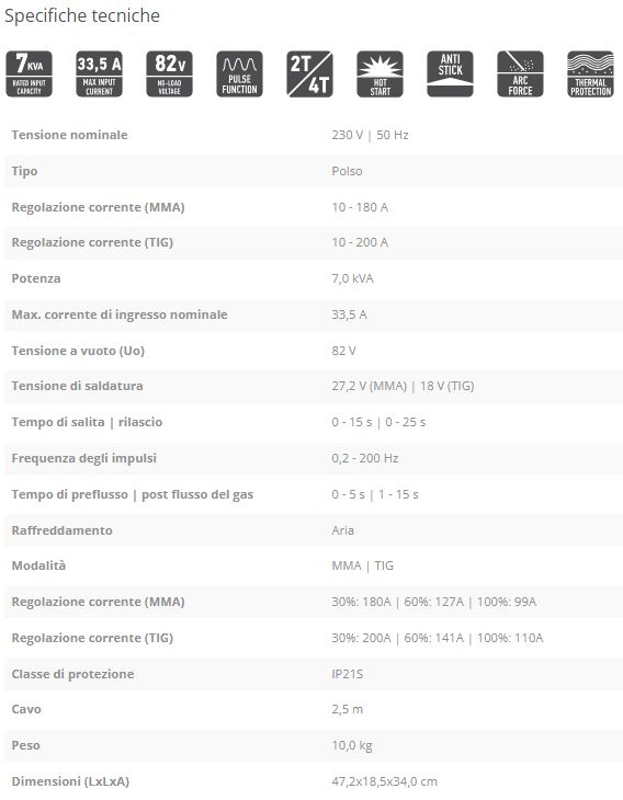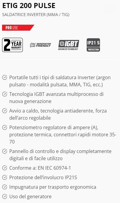 Se il prodotto non è disponibile, prima di ordinarlo, scriveteci via mail o chat per verificare i tempi di consegnaSaldatrice inverter FF Group ETIG 200 Pulse