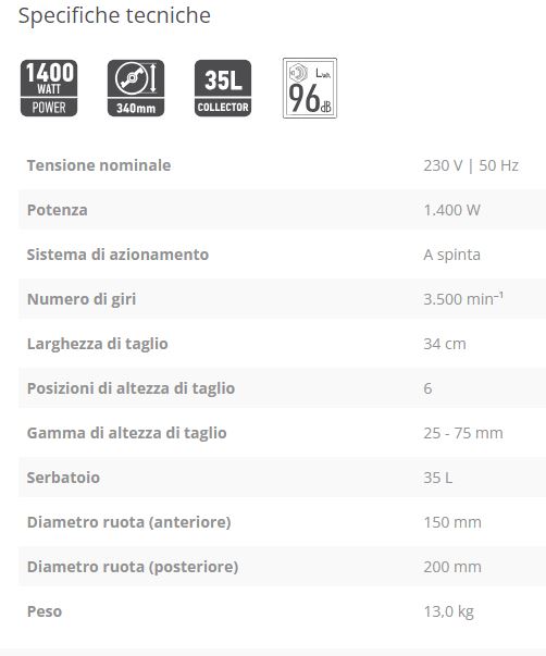 Larghezza di taglio 34 cm.